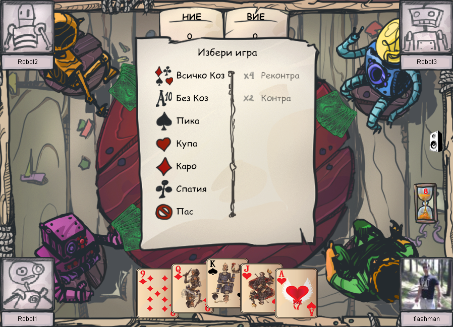 Играй безплатно Белот или играй други онлайн игри.